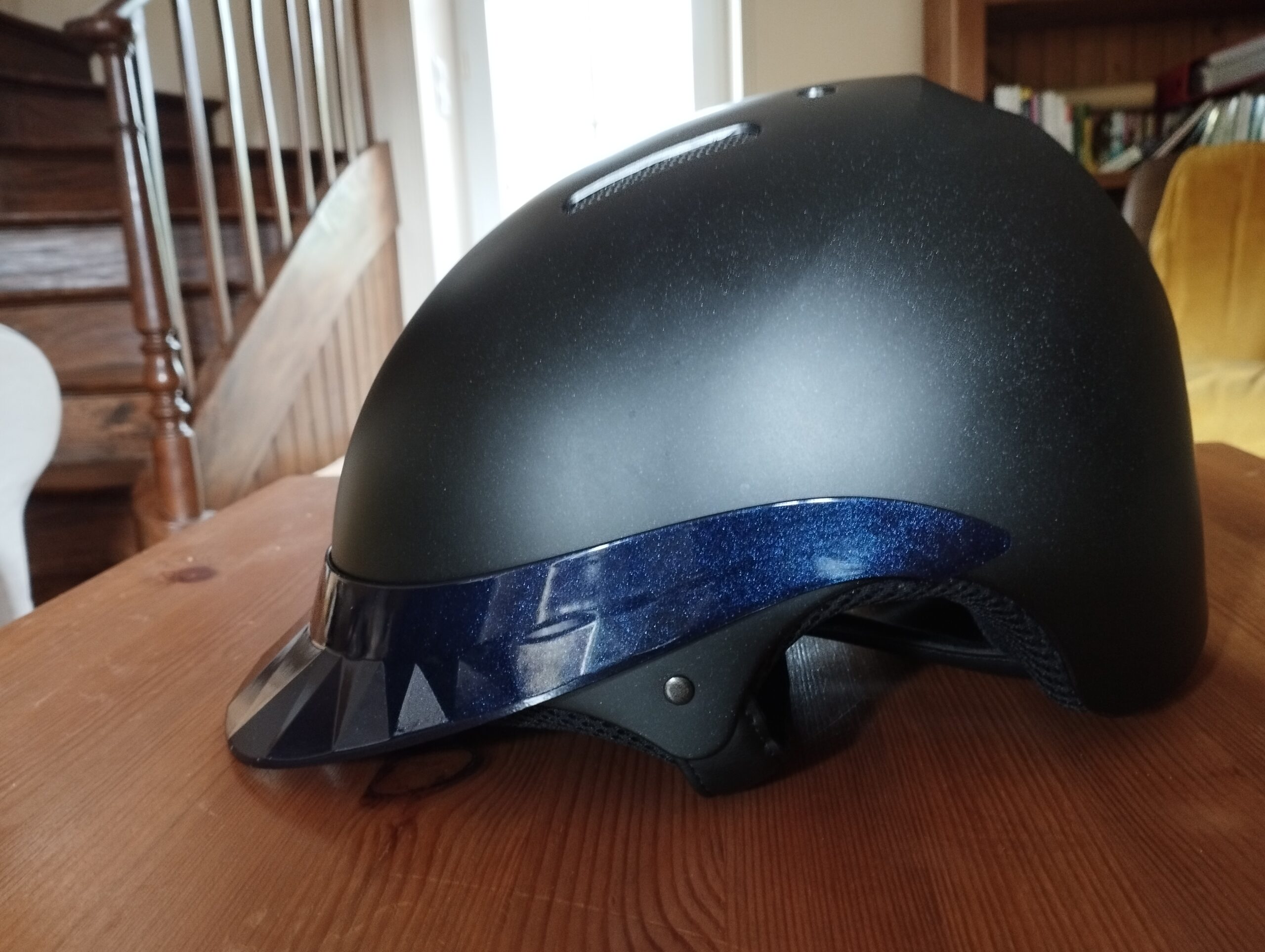 🏇 Casque d’équitation Naca Gravity S – Noir Mat avec Visière Bleue – Taille L (Unisexe)