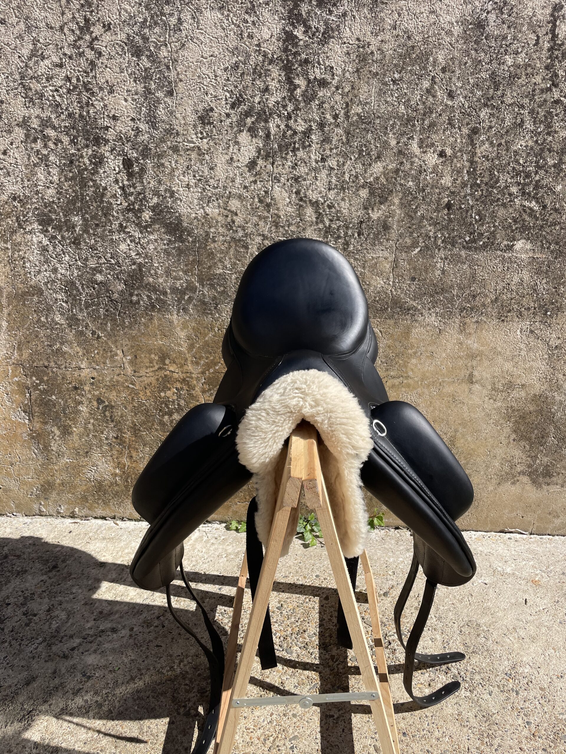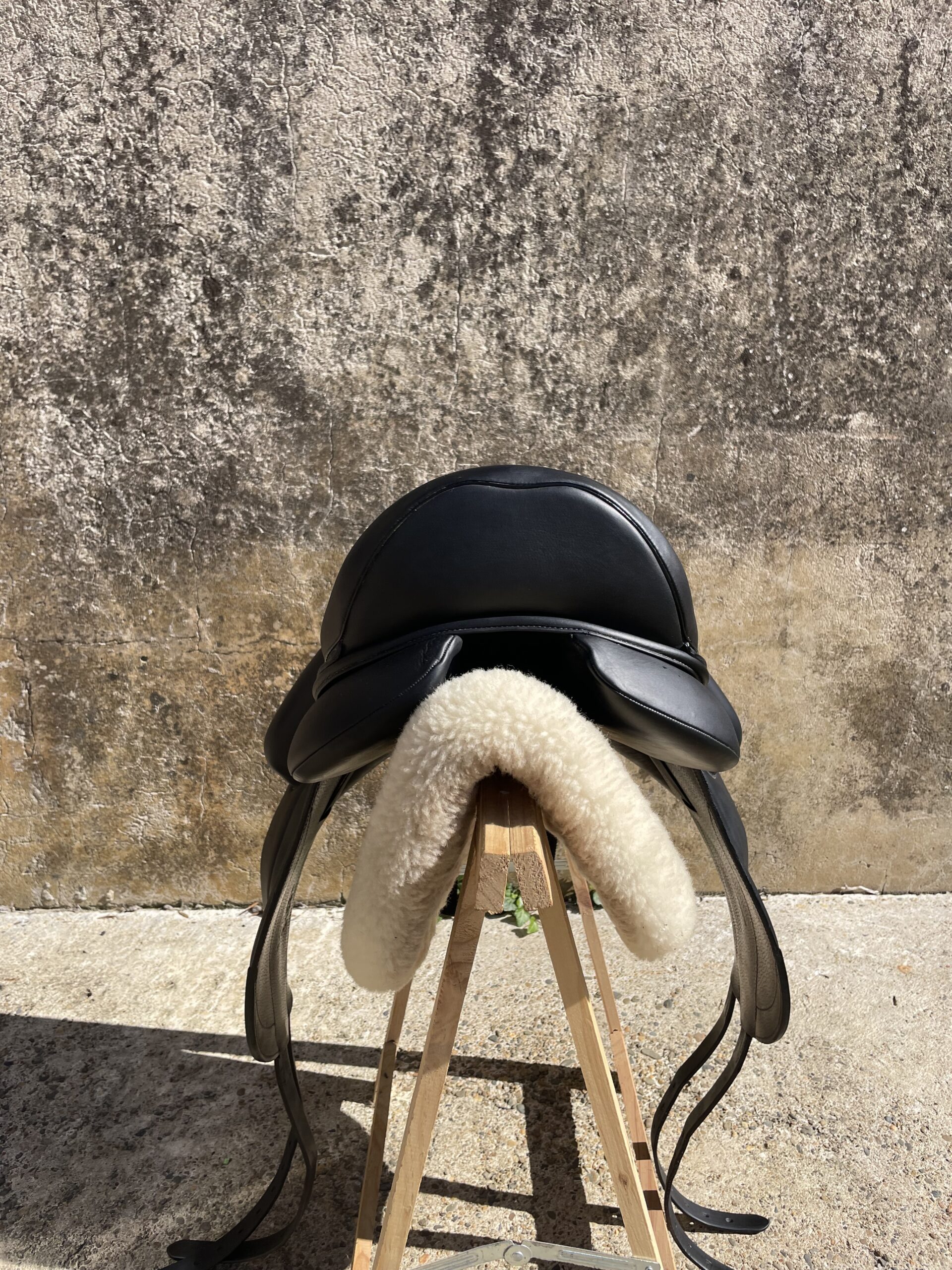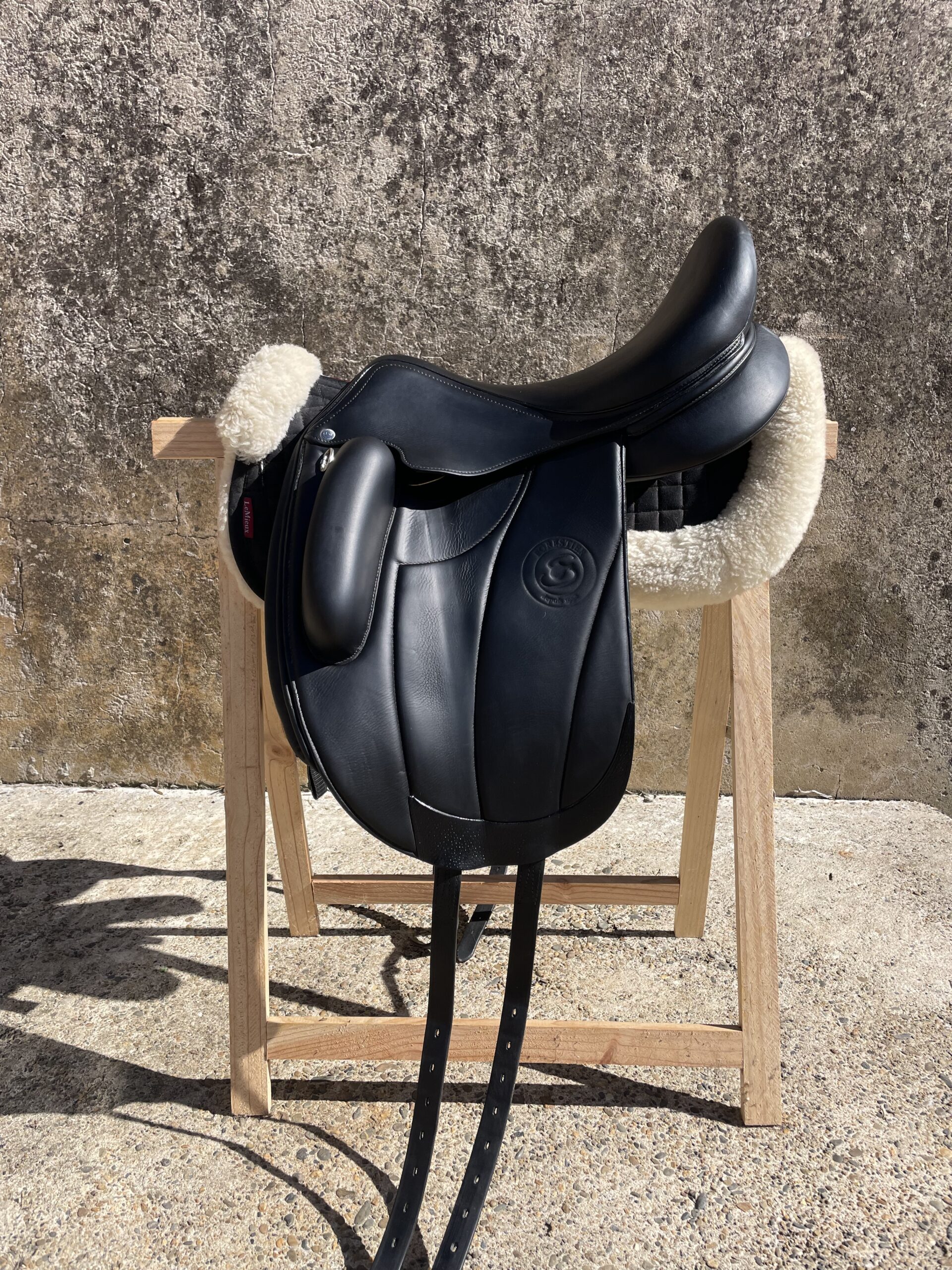 Fabriquée en cuir noir haut de gamme, cette selle monoquartier assure une proximité inégalée avec le cheval, favorisant un contact précis et une position stable.