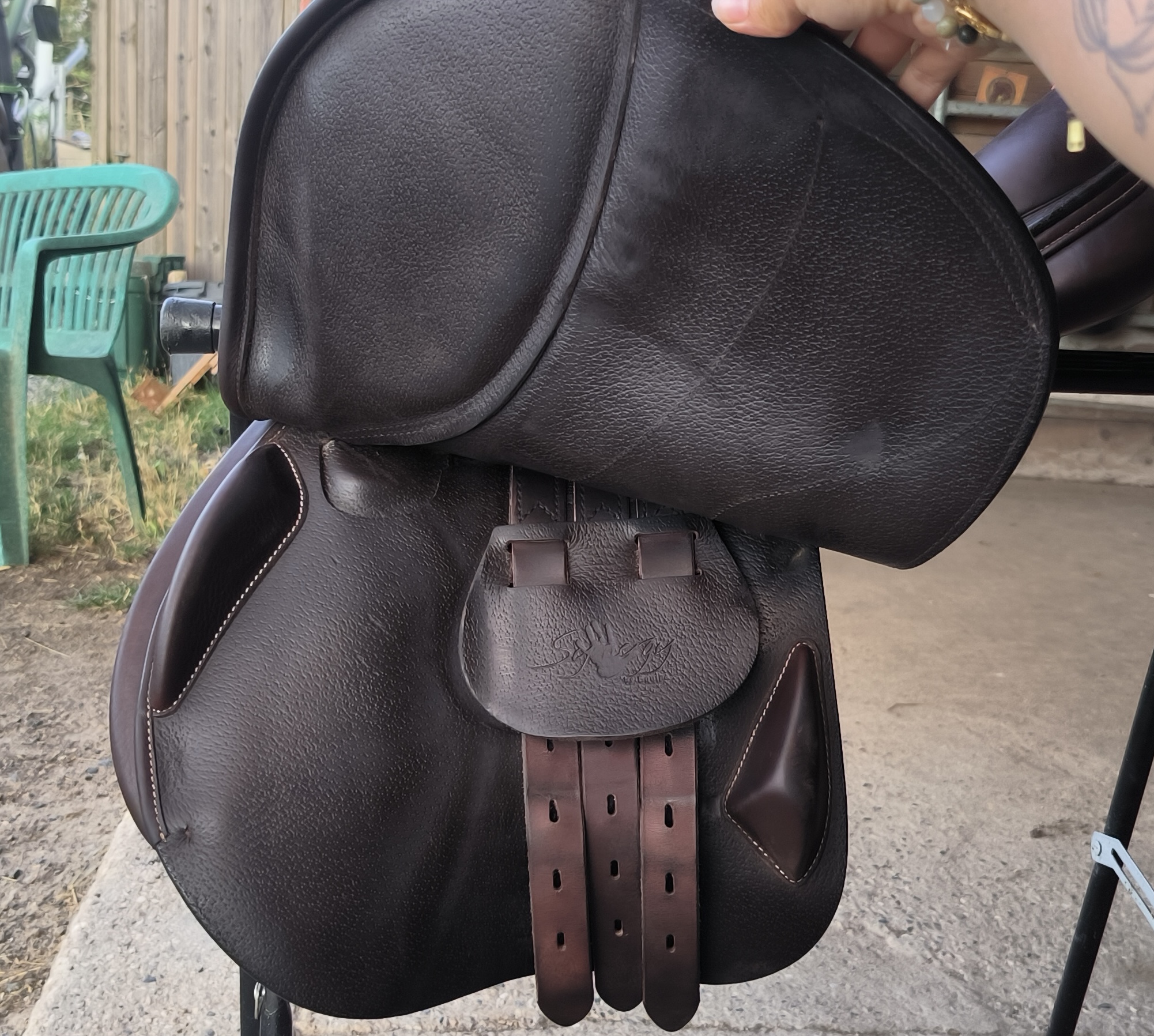 Selle Equipe 17.5 pouces – cuir marron semi-creux double quartier pour obstacle