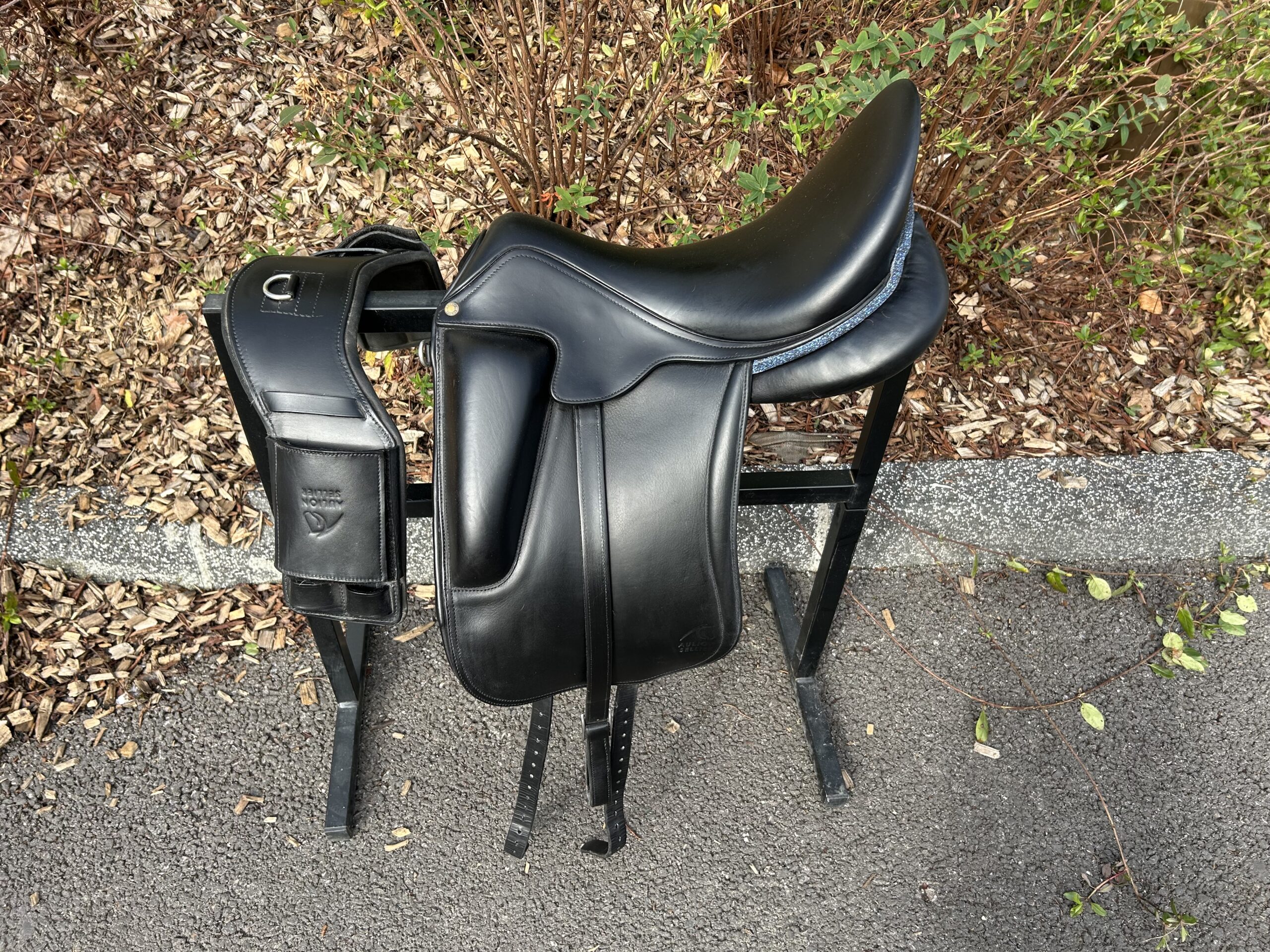 Fabriquée en 2022, cette selle haut de gamme en cuir noir combine design raffiné, confort exceptionnel et technologie équestre avancée, pour offrir au cavalier une position stable et un contact optimal avec le cheval.Idéale pour les cavaliers passionnés de dressage, cette selle 17 pouces assure une assise équilibrée et une communication fluide, favorisant la performance tout en respectant le bien-être du cheval.
