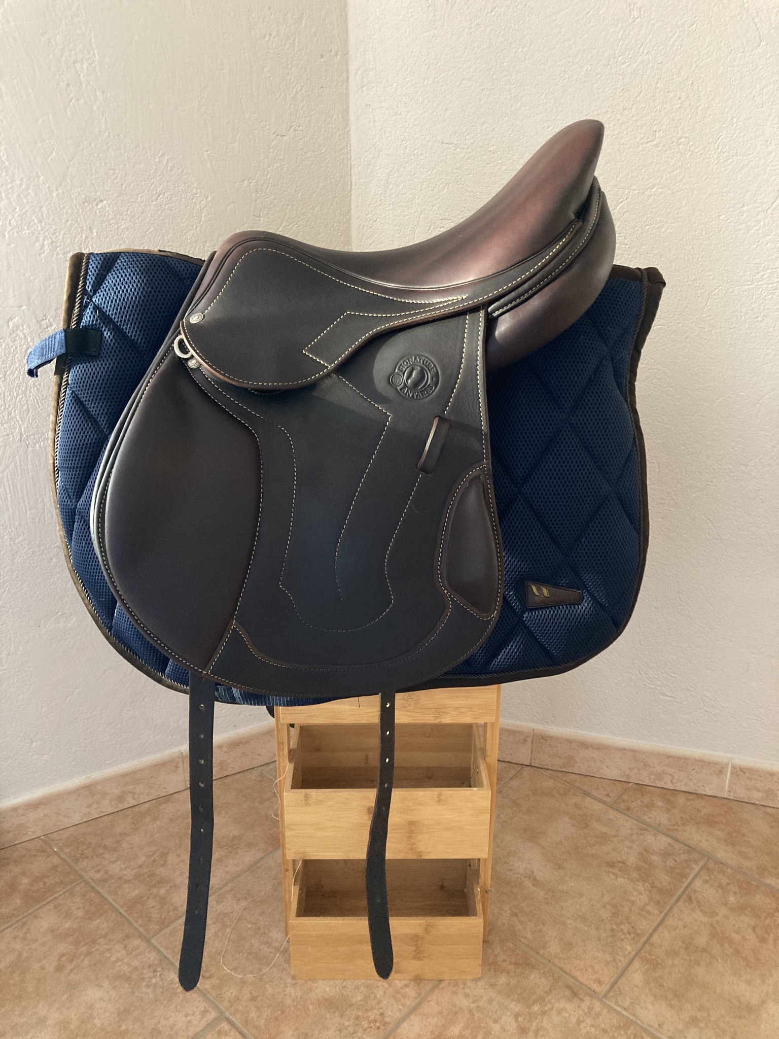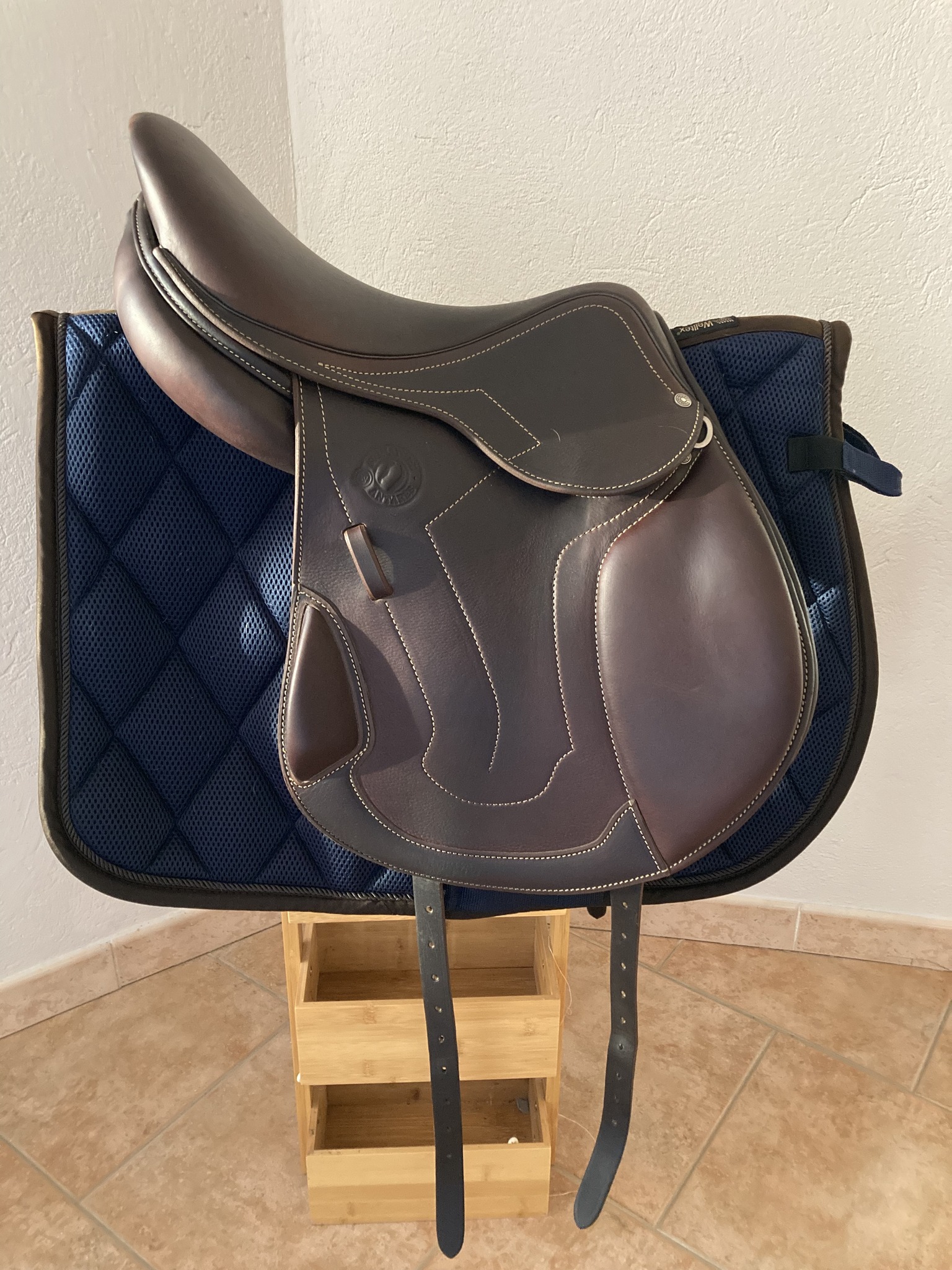 Cette selle Antarès Signature 17 pouces se distingue par son design ergonomique et sa conception artisanale française. Elle est idéale pour les cavaliers recherchant une position naturelle, un contact précis et un confort optimal au quotidien comme en compétition.