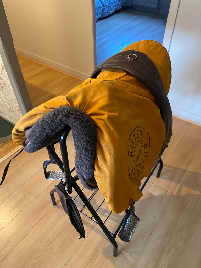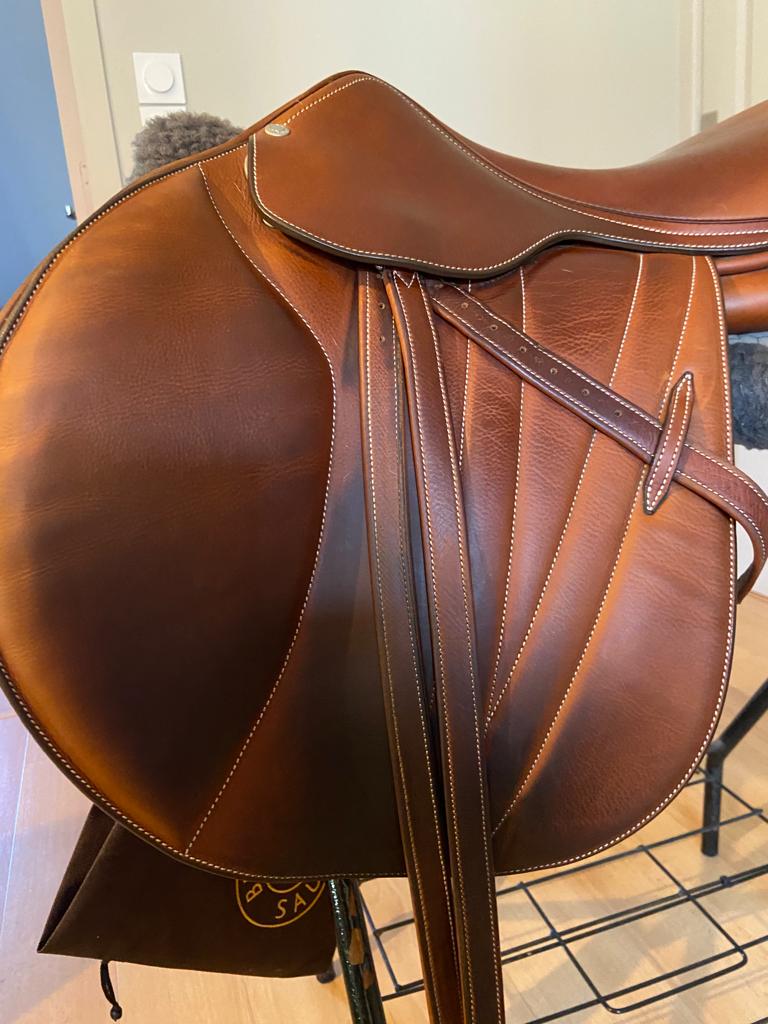 Découvrez cette superbe selle d’obstacle Butet 17.5 pouces, un modèle de 2021 incarnant tout le savoir-faire et la finesse artisanale de la maison Butet Sellier. Conçue en cuir marron de haute qualité, cette selle offre une assise précise, un excellent contact et une liberté de mouvement idéale pour la pratique du saut d’obstacles.