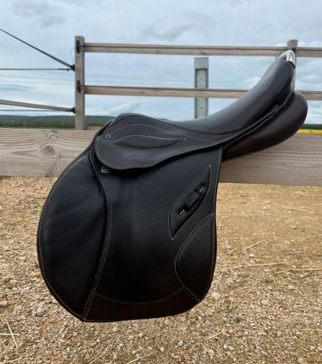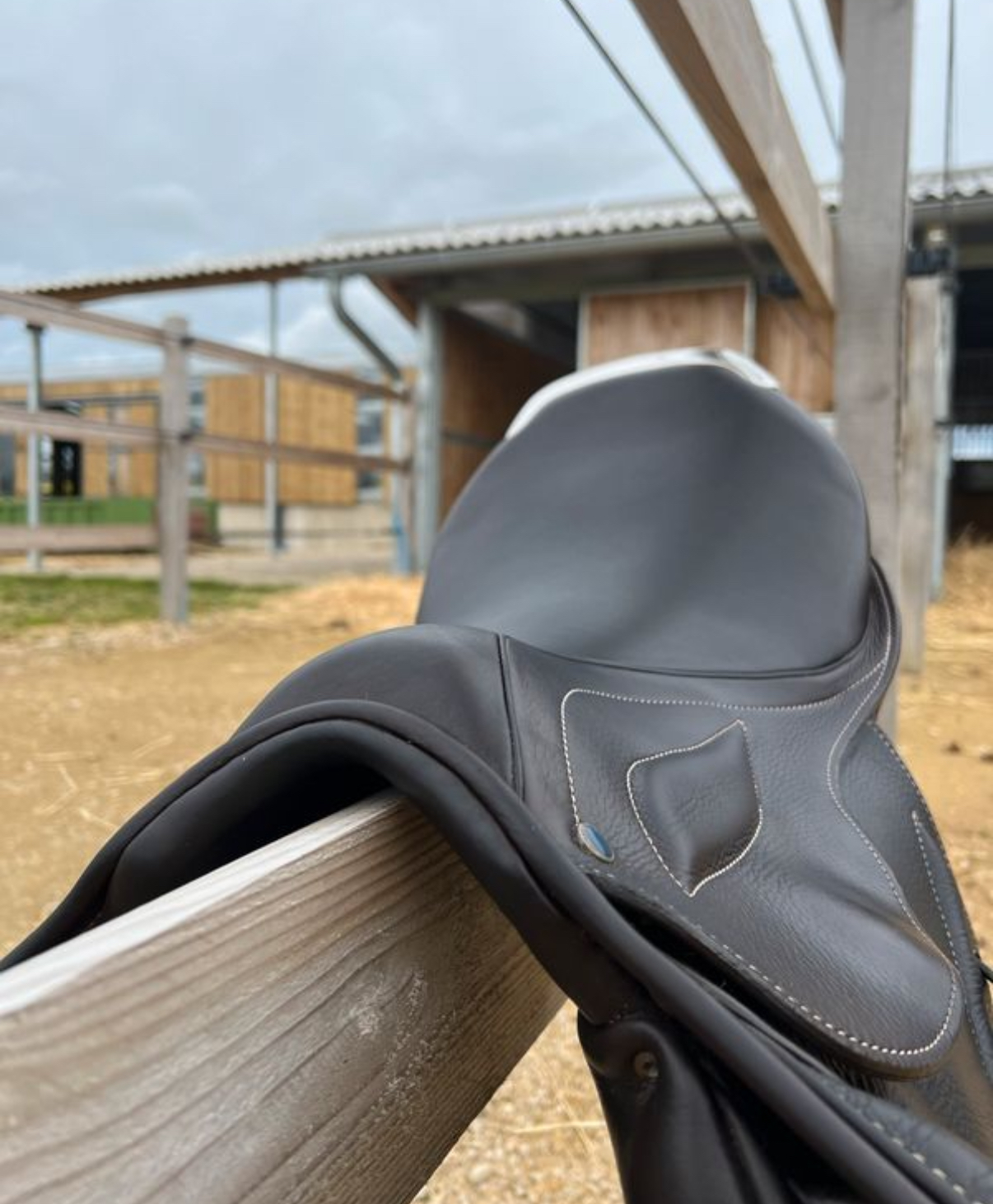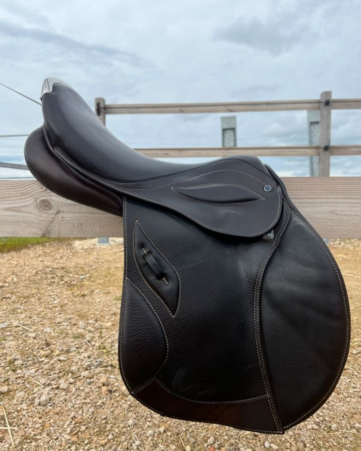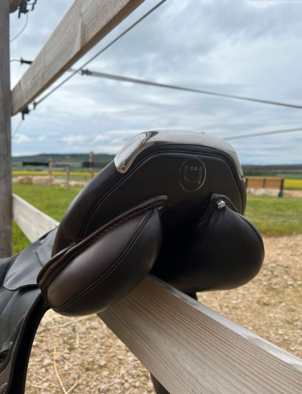 Selle Stübben 17.5 pouces – cuir marron semi-creux pour dressage et obstacle